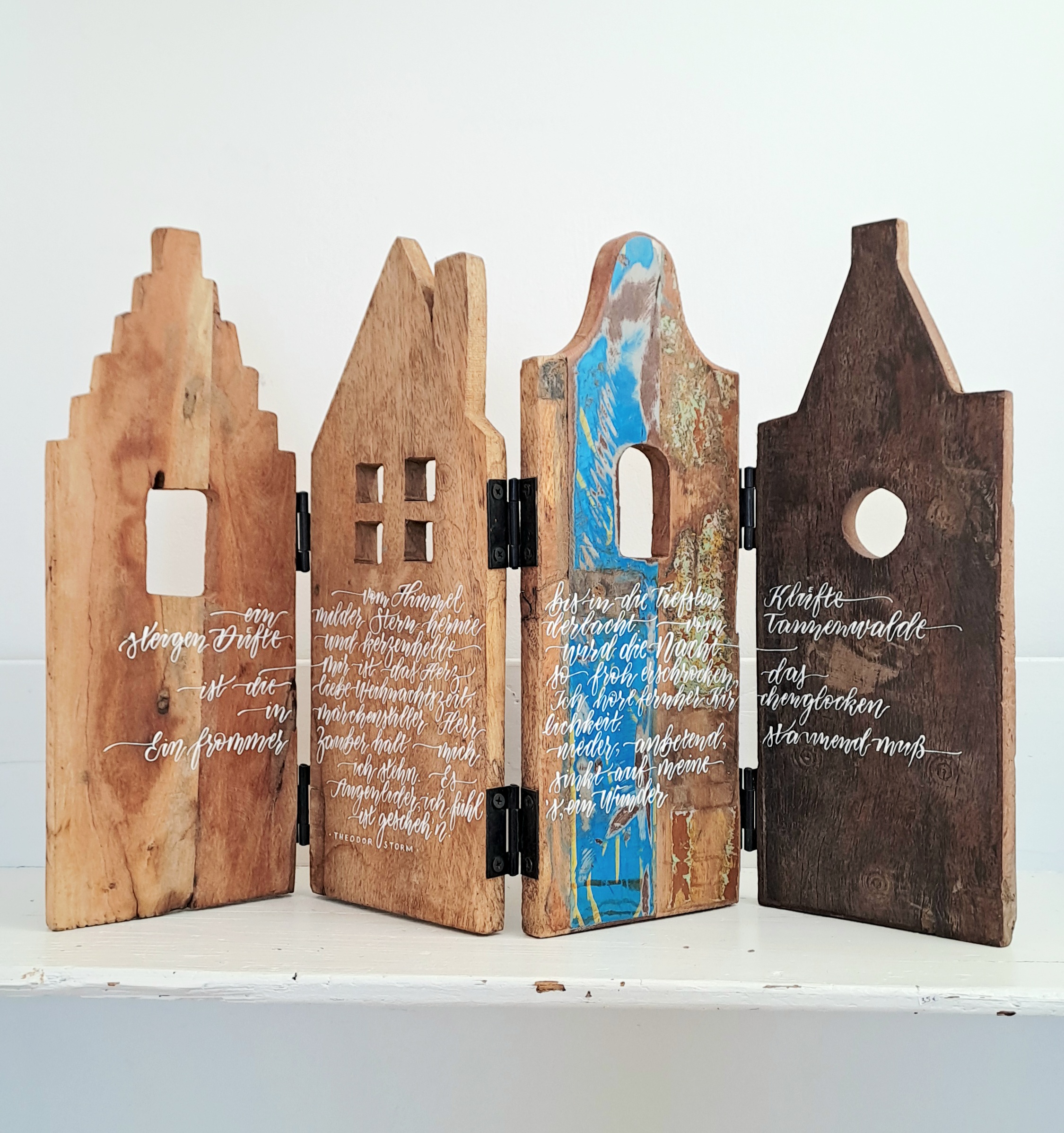 von hand kalligrafierter, weihnachticher text von theodor storm.