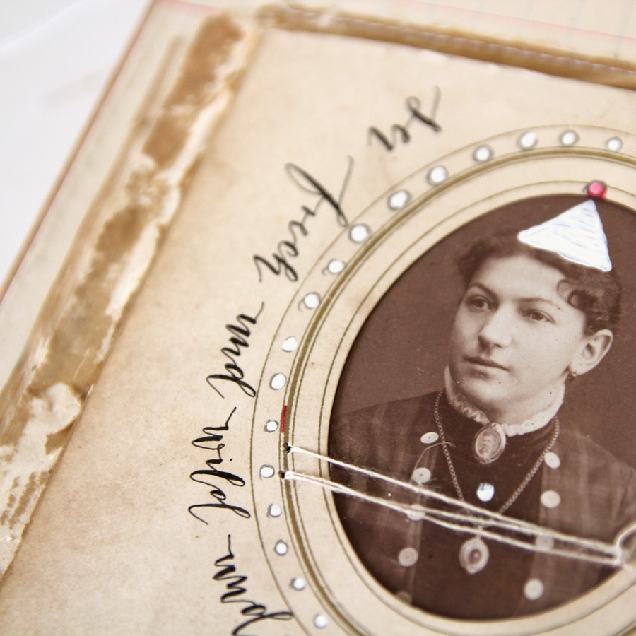 collage aus einem original vintage photo und naturmaterial auf pappkarton.