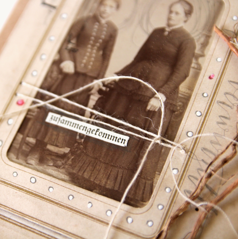 collage aus einem original vintage photo und naturmaterial auf pappkarton.