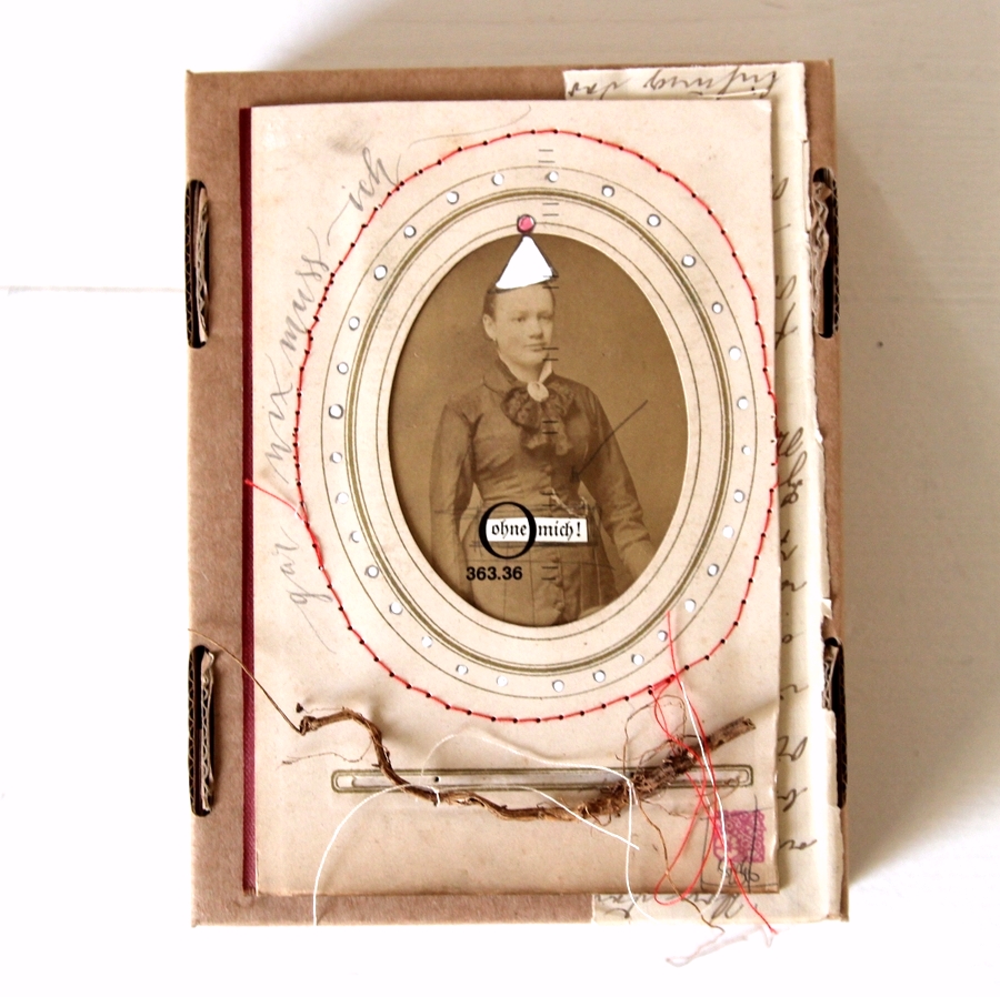 collage aus einem original vintage photo und naturmaterial auf pappkarton.