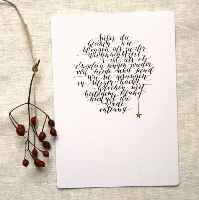 zu sehen die kalligraphie eines weihnachtlichen textes.