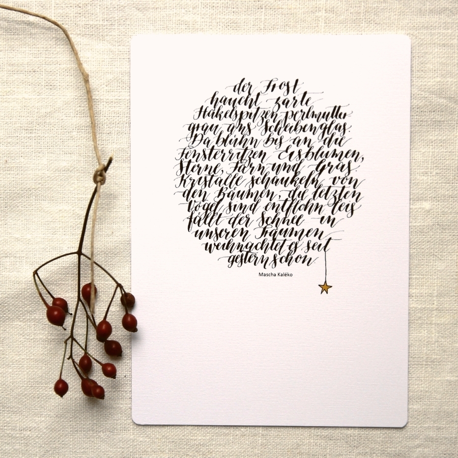 zu sehen die kalligraphie eines weihnachtlichen textes.