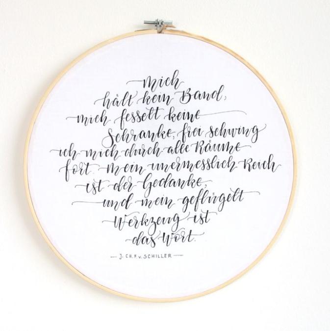 "Mich hält kein Band, mich fesselt keine Schranke, frei schwing ich mich durch alle Räume fort. Mein unermesslich Reich ist der Gedanke, und mein geflügelt Werkzeug ist das Wort." (Schiller)